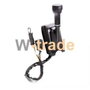This part is an electrical control component, often a joystick or lever, used by the operator to control the transmission of heavy equipment.